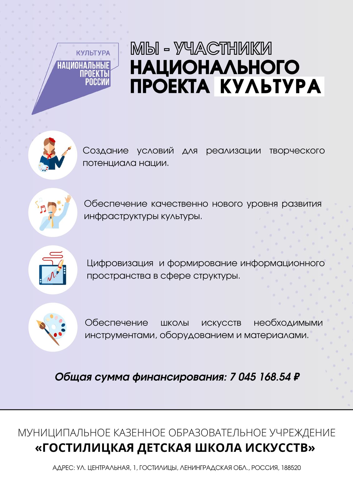 За период реализации национального проекта «Культура»  МКОУДО "Гостилицкая детская школа искусств" обновила материально-техническую базу.